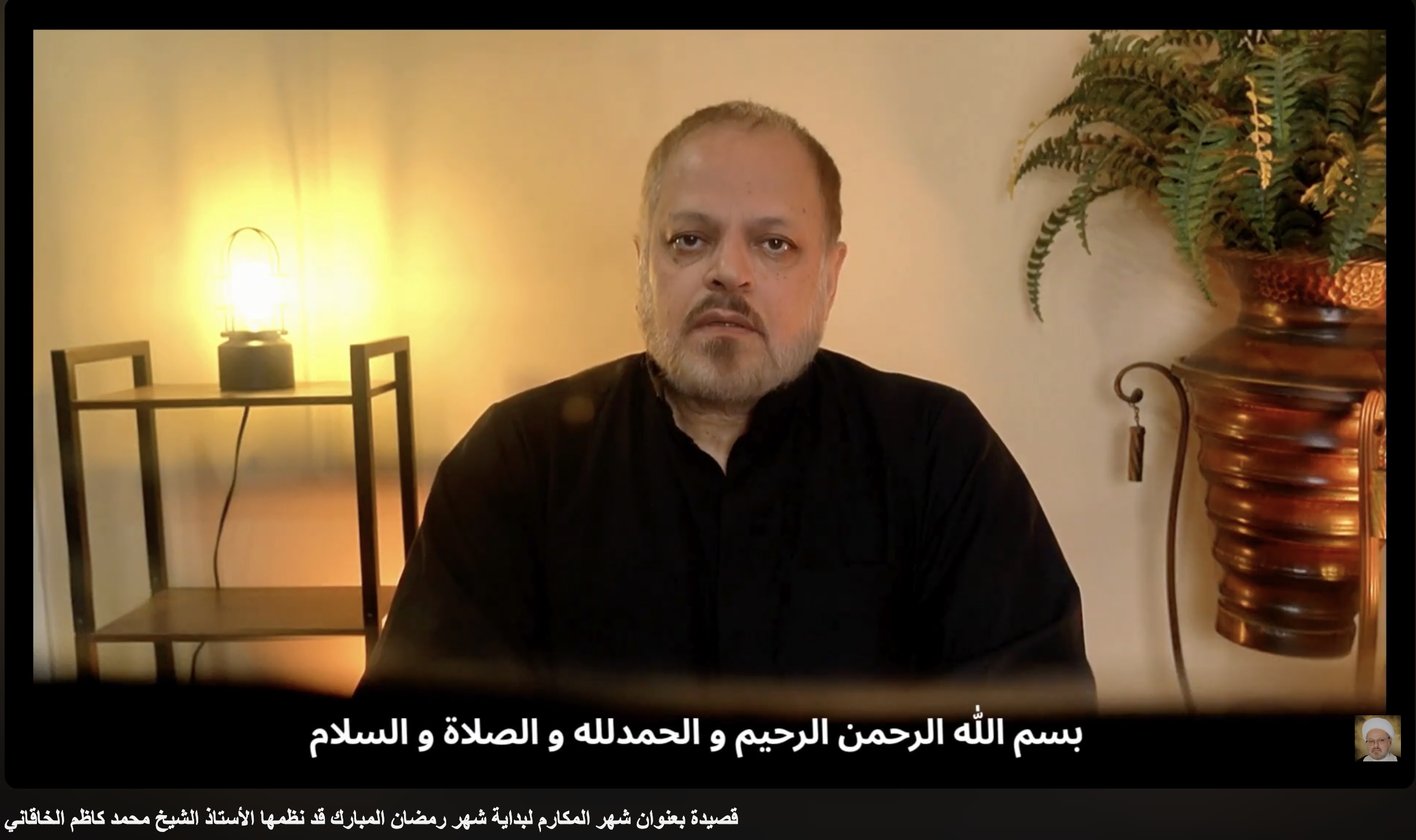 قصيدة بعنوان شهر المكارم لبداية شهر رمضان المبارك نظمها الأستاذ الشيخ محمد كاظم الخاقاني